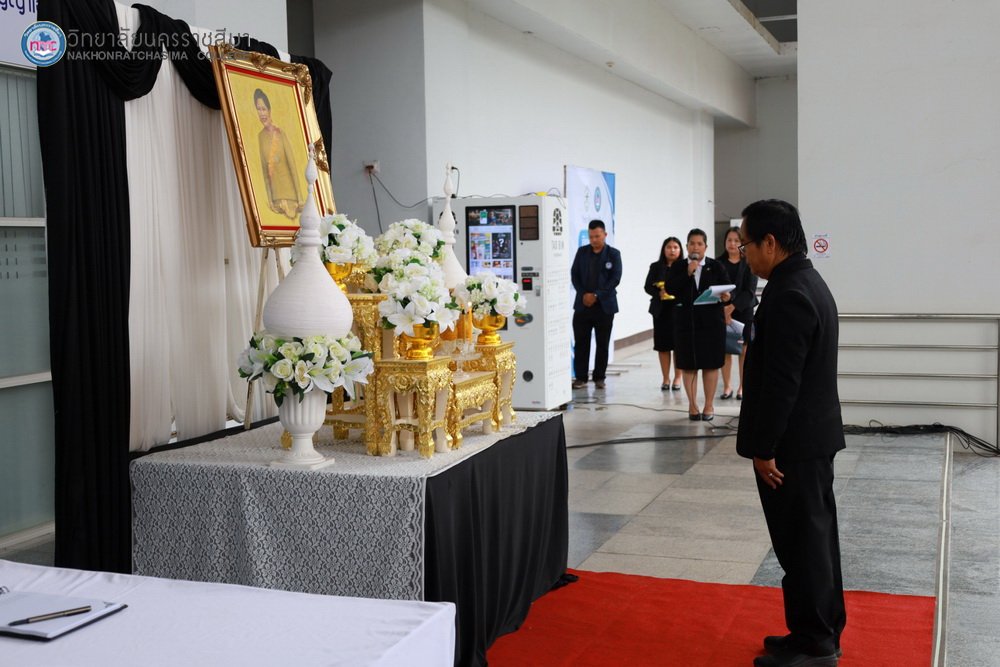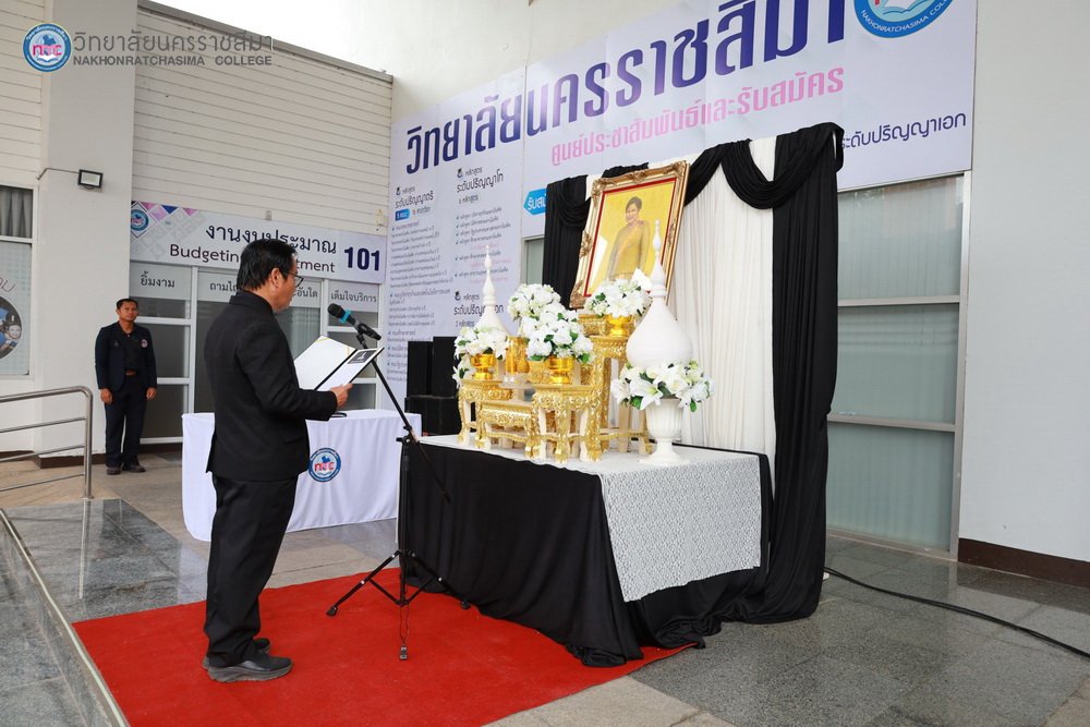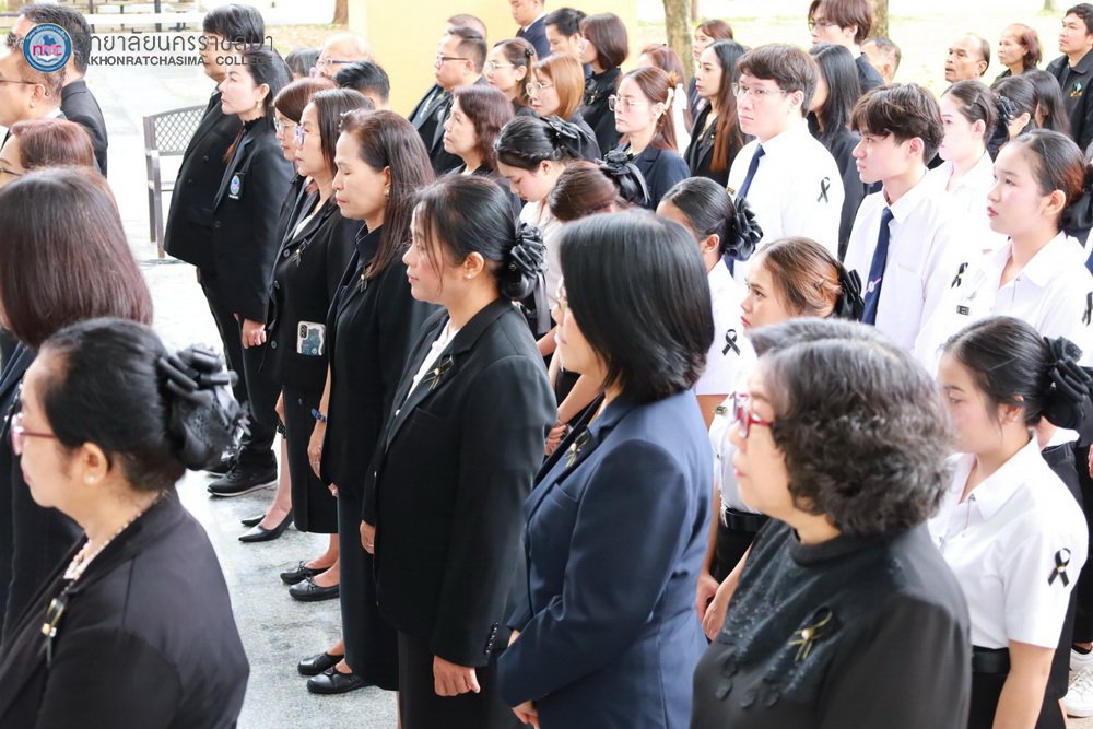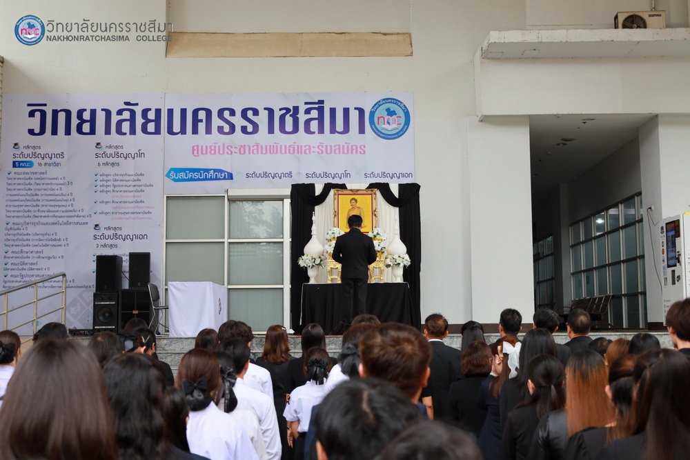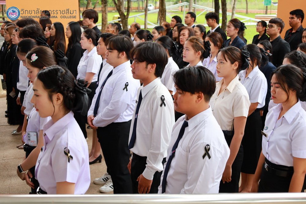 : เมื่อวันศุกร์ที่ 7 พฤศจิกายน พ.ศ. 2568 ท่าน รศ.ดร.วิภาส ทองสุทธิ์ อธิการบดีวิทยาลัยนครราชสีมา พร้อมด้วยคณะผู้บริหาร คณาจารย์ เจ้าหน้าที่ และนักศึกษา เข้าร่วมพิธีถวายความอาลัยแด่สมเด็จพระนางเจ้าสิริกิติ์ พระบรมราชินีนาถ พระบรมราชชนนีพันปีหลวง ซึ่งจัดขึ้น ณ บริเวณหน้าอาคารวิทยาลัยนครราชสีมา