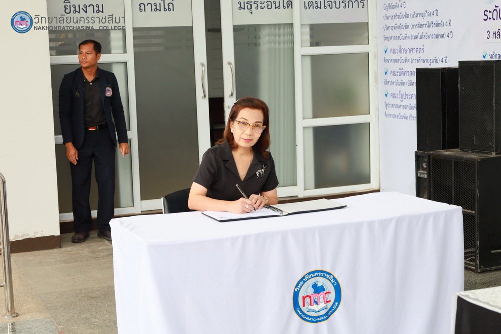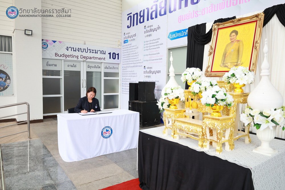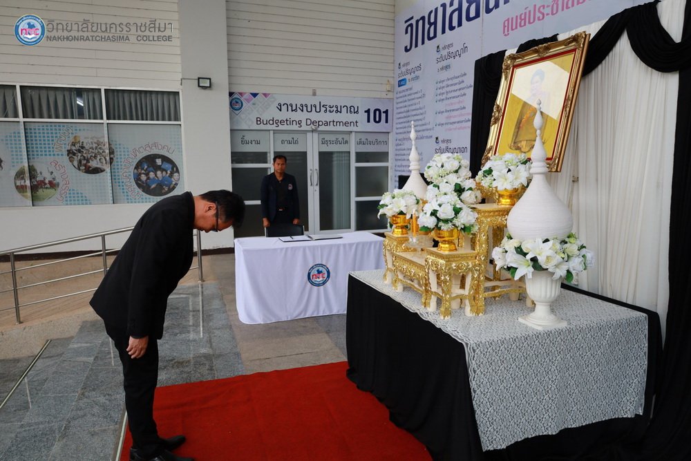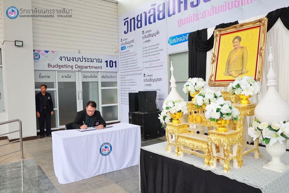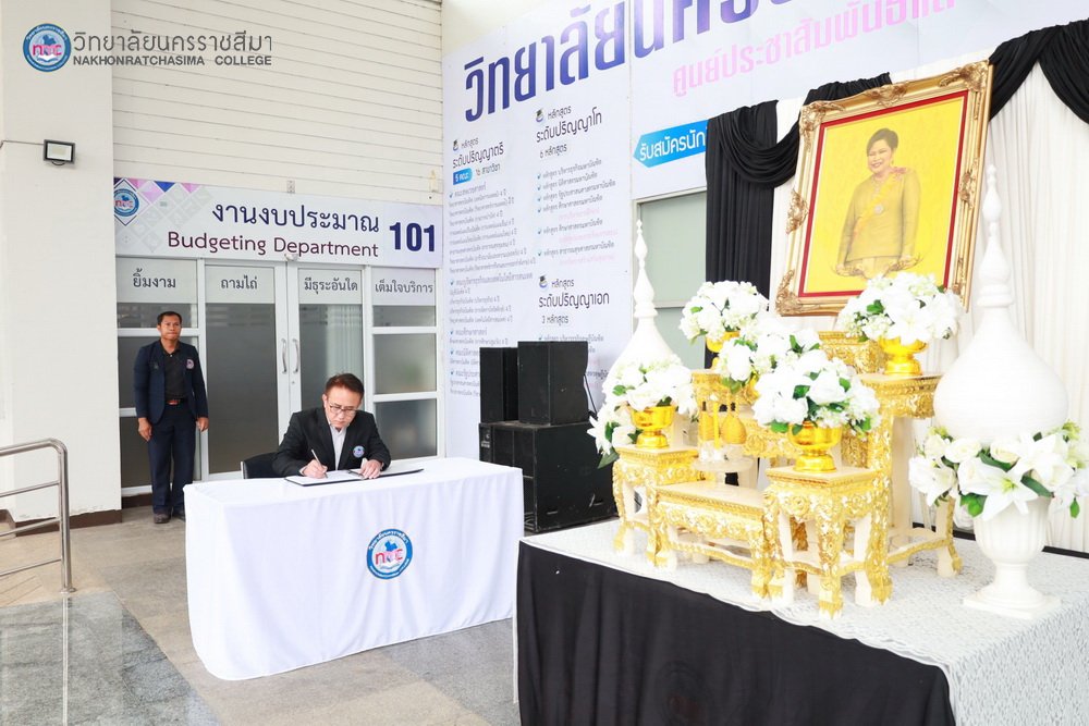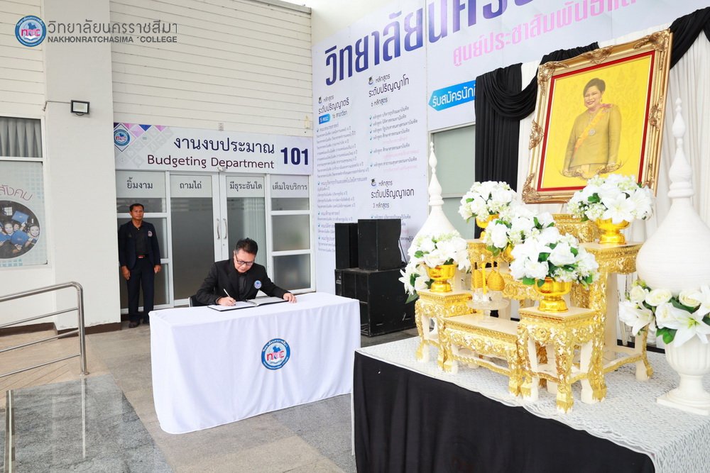 : เมื่อวันศุกร์ที่ 7 พฤศจิกายน พ.ศ. 2568 ท่าน รศ.ดร.วิภาส ทองสุทธิ์ อธิการบดีวิทยาลัยนครราชสีมา พร้อมด้วยคณะผู้บริหาร คณาจารย์ เจ้าหน้าที่ และนักศึกษา เข้าร่วมพิธีถวายความอาลัยแด่สมเด็จพระนางเจ้าสิริกิติ์ พระบรมราชินีนาถ พระบรมราชชนนีพันปีหลวง ซึ่งจัดขึ้น ณ บริเวณหน้าอาคารวิทยาลัยนครราชสีมา