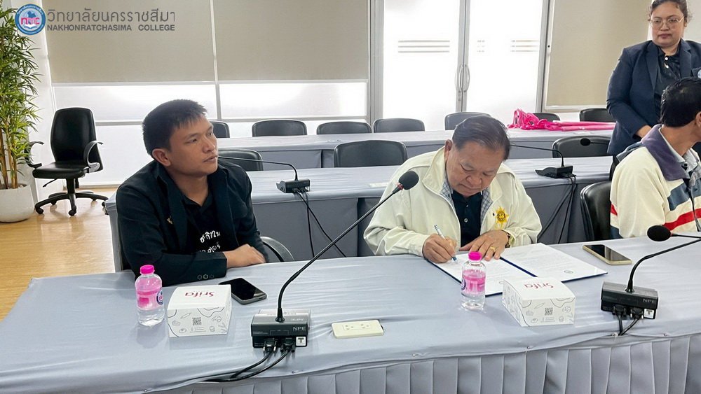 : พิธีลงนามบันทึกข้อตกลงความร่วมมือ (MOU) โครงการผลิตบัณฑิตพันธุ์ใหม่และกำลังคนที่มีสมรรถนะ เพื่อตอบโจทย์ภาคการผลิตตามนโยบายการปฏิรูปการอุดมศึกษาไทย ปี พ.ศ. 2569 หลักสูตรประเภทประกาศนียบัตร ในหัวข้อ "AI For SME Transformation: เพิ่มมูลค่าธุรกิจชุมชนสู่ยุคดิจิทัลด้วย AI" ระหว่างวิทยาลัยนครราชสีมา กับ วิสาหกิจชุมชน ตำบลบ้านใหม่