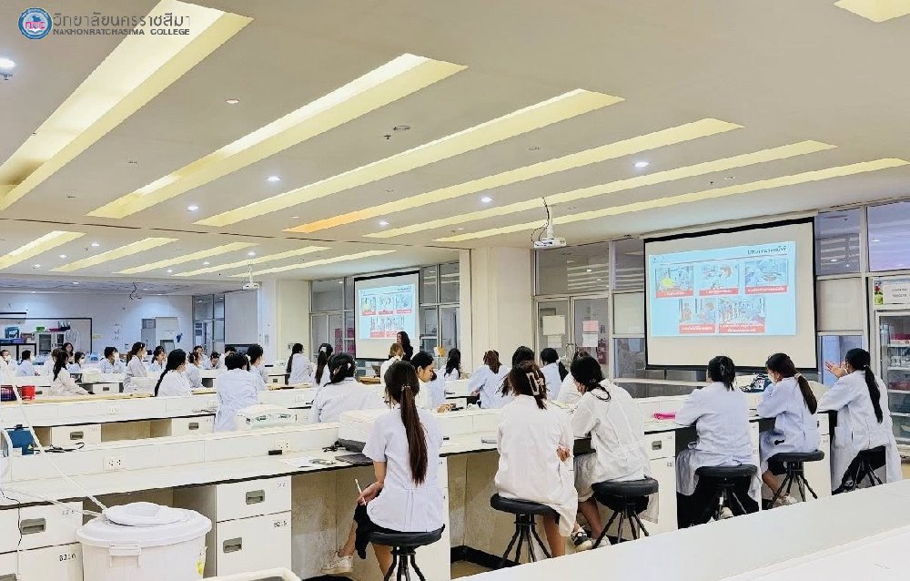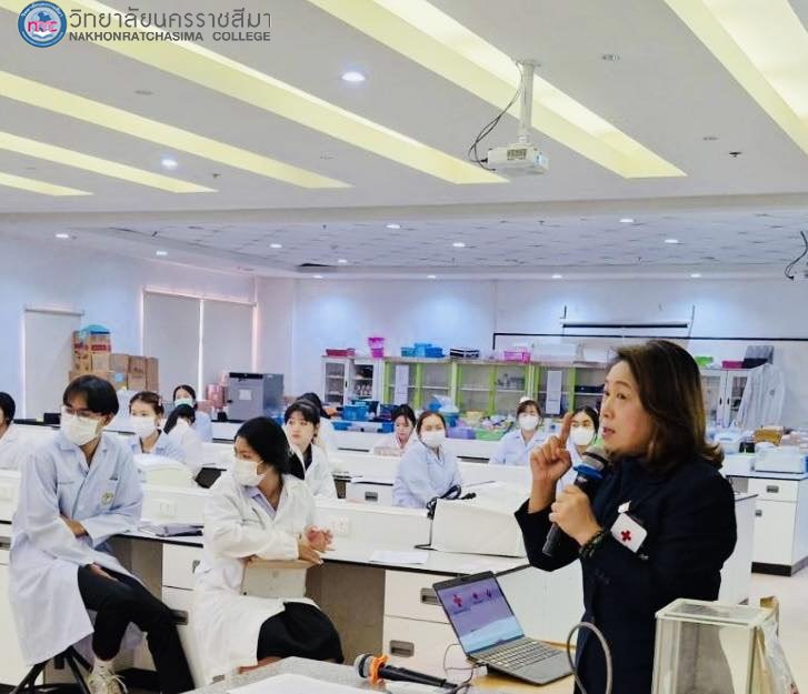 : ในช่วงบ่ายของวันที่ 15 และ 16 มกราคม 2569 วิทยาลัยนครราชสีมา ที่สาขาวิชาเทคนิคการแพทย์ ได้รับเกียรติจากหัวหน้าภาคบริการโลหิตแห่งชาติที่ 5 จังหวัดนครราชสีมา ทนพญ.ศิริลักษณ์ เพียกขุนทด เข้ามาเป็นวิทยากรบรรยายให้ความรู้เรื่องการคัดกรองผู้บริจาคโลหิต ตามเกณฑ์มาตรฐานใหม่ของสภากาชาดไทย ให้กับนักศึกษาสาขาวิชาเทคนิคการแพทย์ ชั้นปีที่ 3 ที่กำลังเรียนในรายวิชา MT602 ปฏิบัติการวิทยาศาสตร์การบริการโลหิต 1 รวมจำนวนนักศึกษา 79 คน และอาจารย์ผู้ร่วมสอนอีก 5 ท่าน ในการนี้ขอขอบคุณวิทยากรที่ให้โอกาส และเสียสละเวลามาเป็นวิทยากรให้ความรู้ ความเข้าใจ รวมทั้งถ่ายทอดประสบการณ์อันทรงคุณค่าและสั่งสมมานาน ให้กับนักศึกษาที่มีอนาคตจะเป็นนักเทคนิคการแพทย์รุ่นใหม่ได้ทราบและนำไปปฏิบัติได้จริงต่อไป