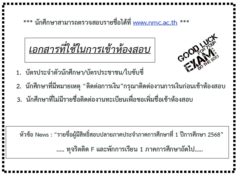 ข้อปฏิบัติและเอกสารที่ใช้ในการเข้าห้องสอบ